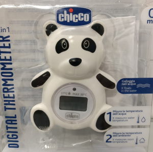 El termómetro de baño Chicco con diseño de divertido osito panda es un termómetro para el bebé 2 en 1, porque está diseñado para medir la temperatura del agua de la bañera del bebé o de la propia habitación del niño para controlar su temperatura.