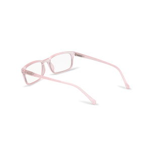Gafas de lectura con montura cuadrada en color rosa palo.
